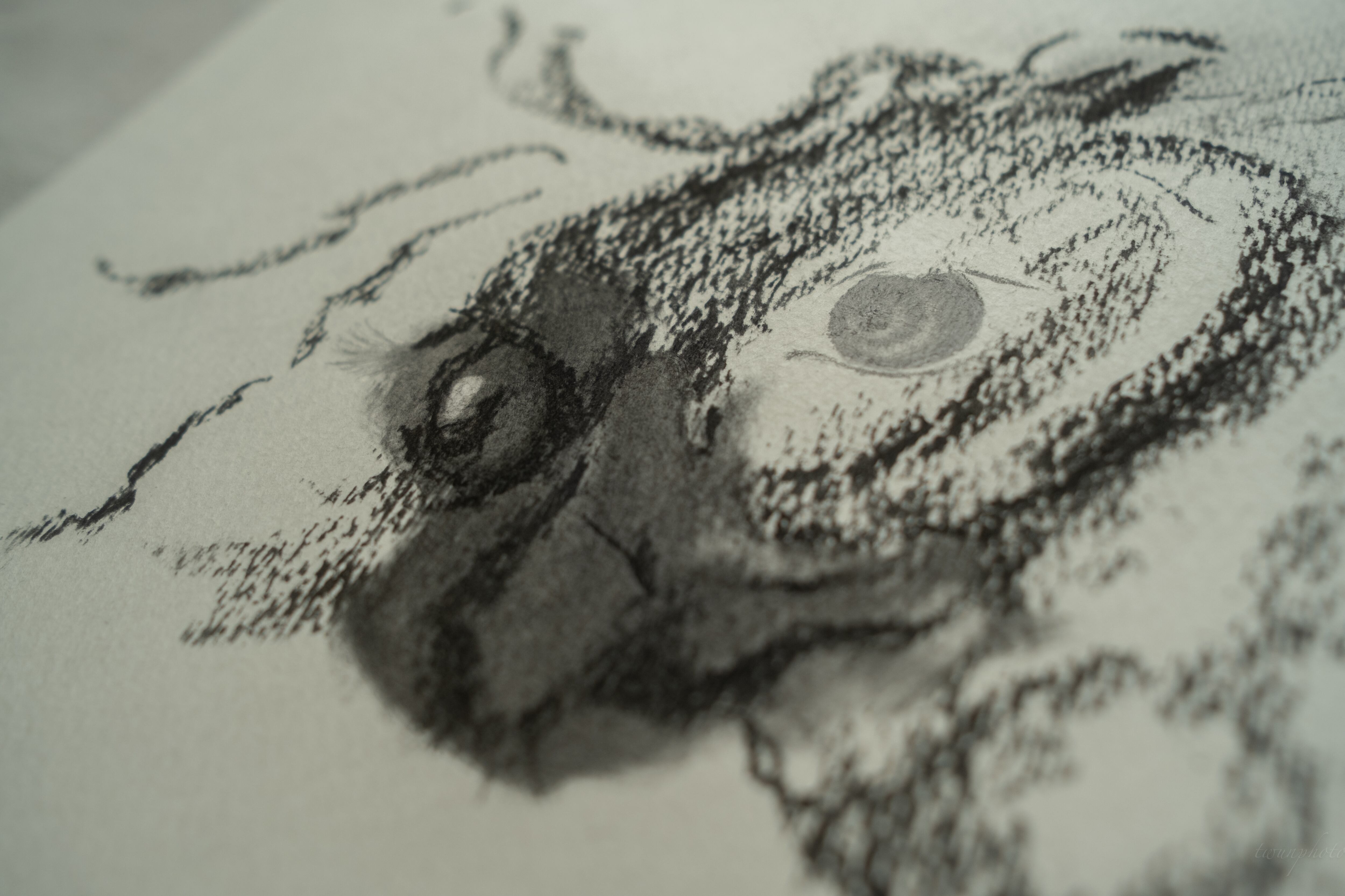 A4サイズの画用紙に、鉛筆と木炭を使って丁寧に仕上げました。
