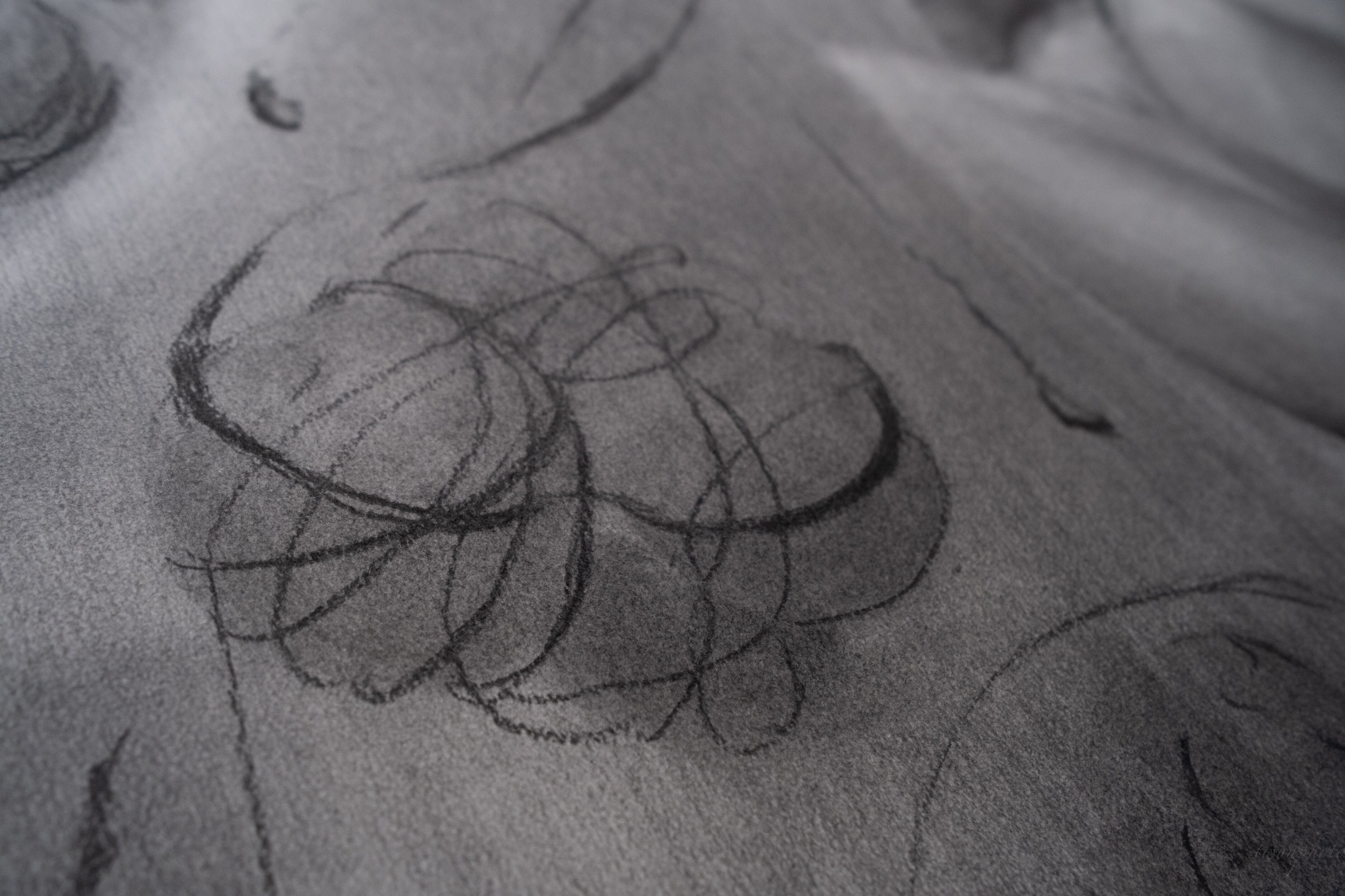 B1サイズの画用紙に、木炭と鉛筆を駆使して表現を施しました。